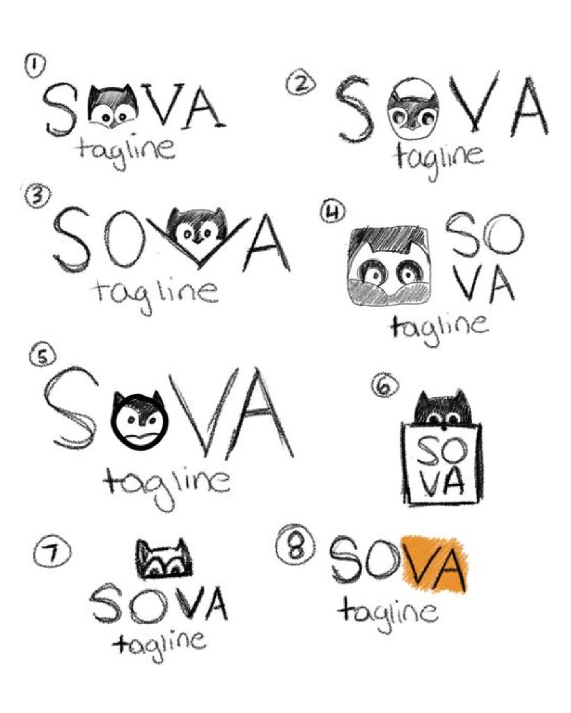 SOVA hand-drawn logos were converted to a digital logos in Adobe Illustrator