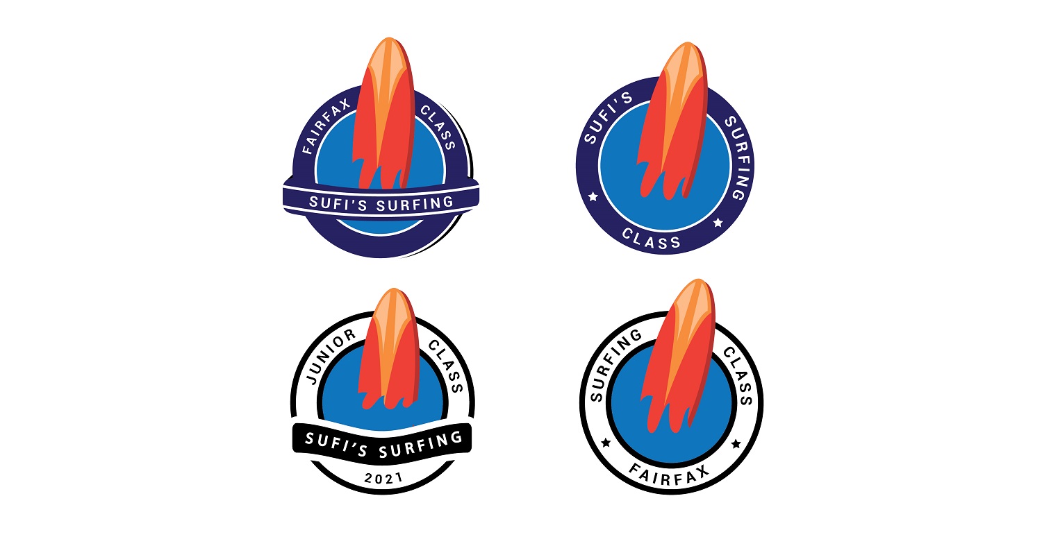 Sufi’s Surfing is a surfing class that provides surfing lessons by two professionals. Classes are in-person and is a month long. Classes are for children and adults. Class registration can be found at sufisurfing.com. Sufi’s Surfing’s brand colors are blue and orange.