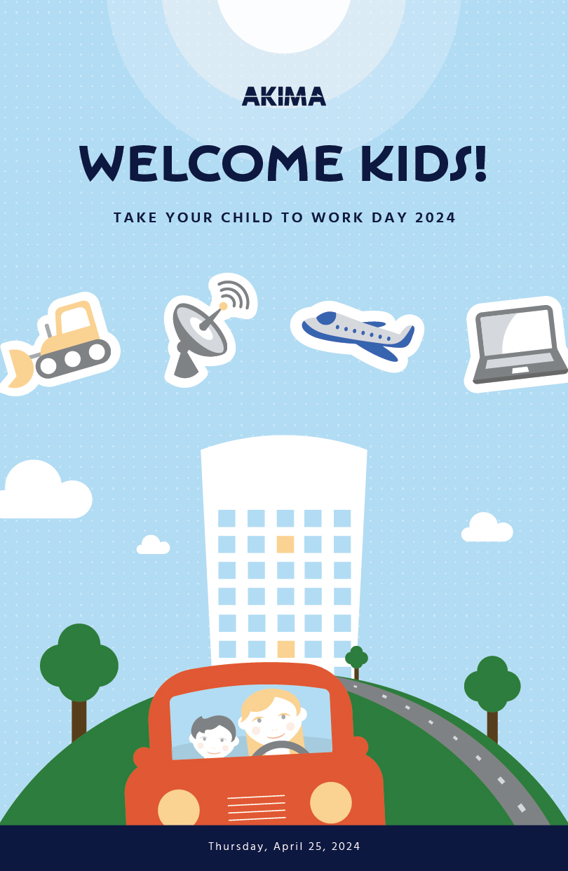 Take Your Kids to Work Day was a corporate event that gave employees an opportunity to bring their children to the work environment to learn about the company, various jobs, and to inspire them for their future. The audience was employees and their children. Therefore, the vector illustration was designed within the company brand, with a fun, and a light feel to it.