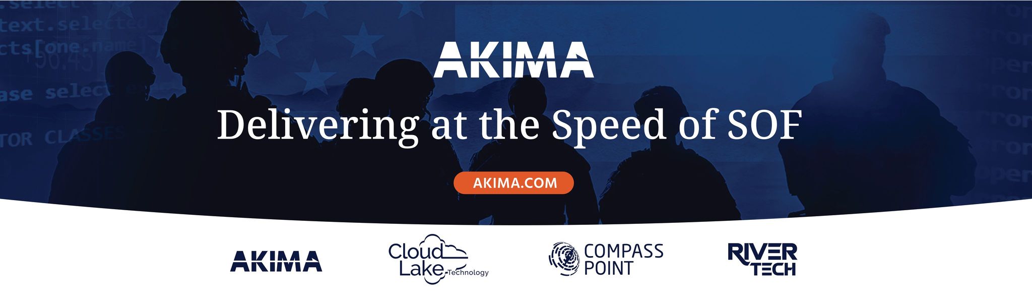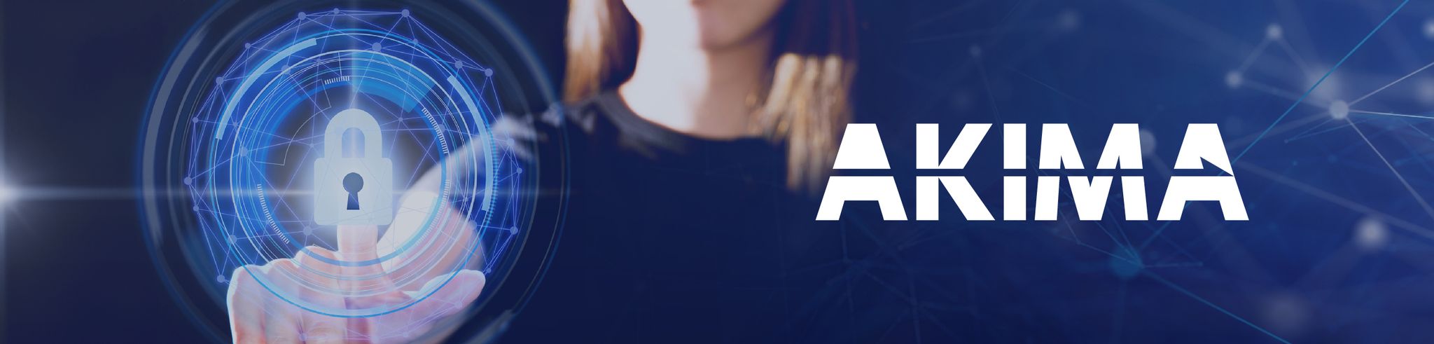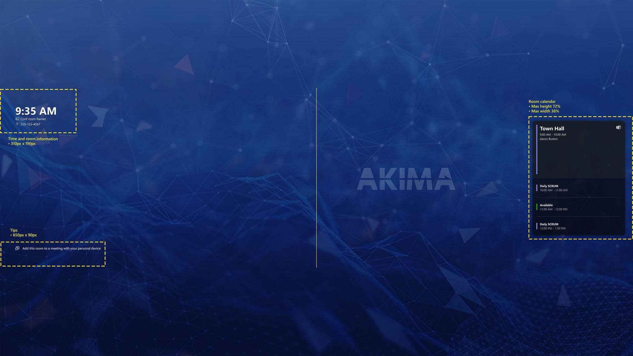Event poster was designed to be placed on an easel. Table tents were created to showcase information to the audience on tables and counters. Both designs were created using elements of the AKIMA brand: white text, a midnight blue background with an overlay for contrast, thin lines, and orange to highlight details.