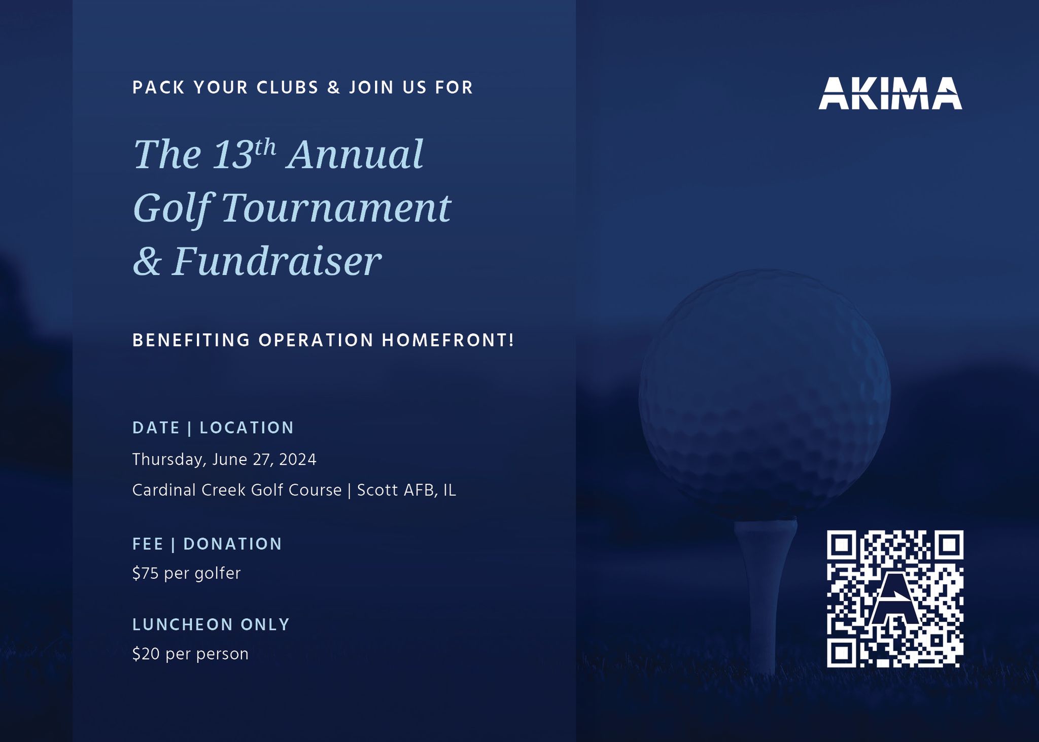 A golf tournament postcard was designed for an Akima sponsorship event. Noto Serif typeface was used for headlines, and Hind was used for the body copy. Image was photoshopped to have a midnight blue overlay. QR code was created in Adobe InDesign and the Akima A was designed in Adobe Illustrator.