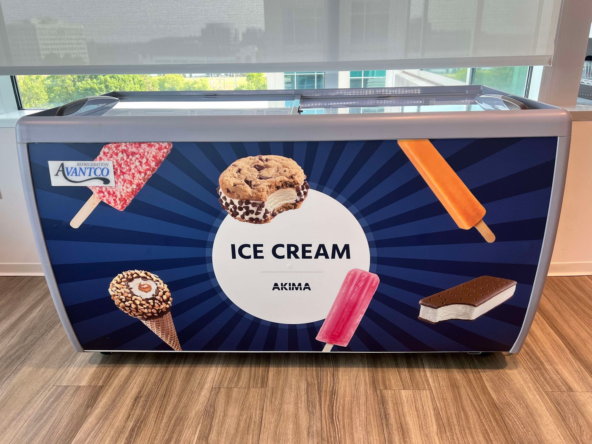 The Akima Ice Cream Sign was designed for Akima employees with company branding with a display of numerous ice cream provided.