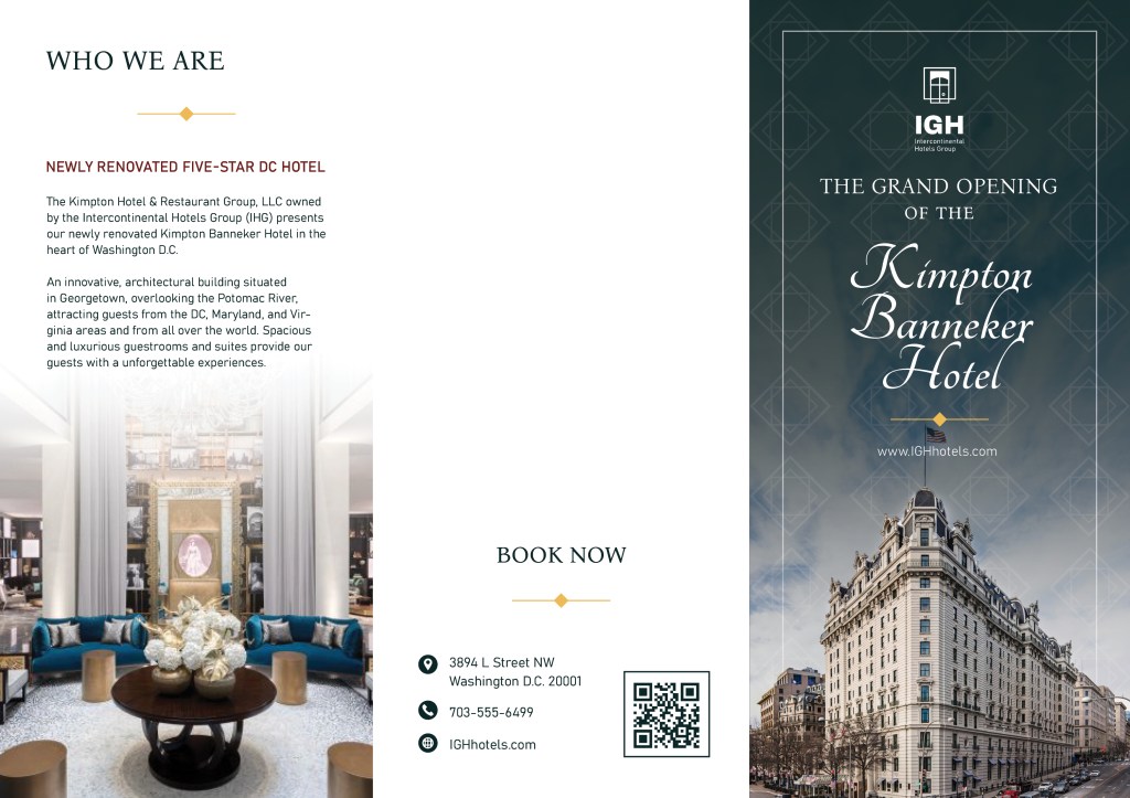 1. Visually-compelling brochure about Kimpton Banneker Hotel’s grand opening and why consumers should visit