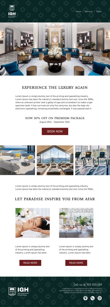 3. Innovative & dynamic email campaign layout to engage existing consumers to return to the hotel